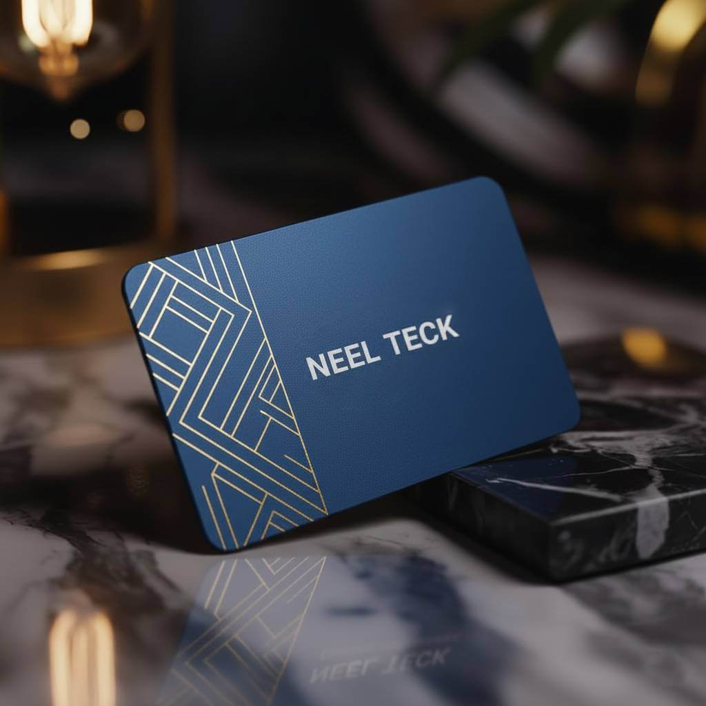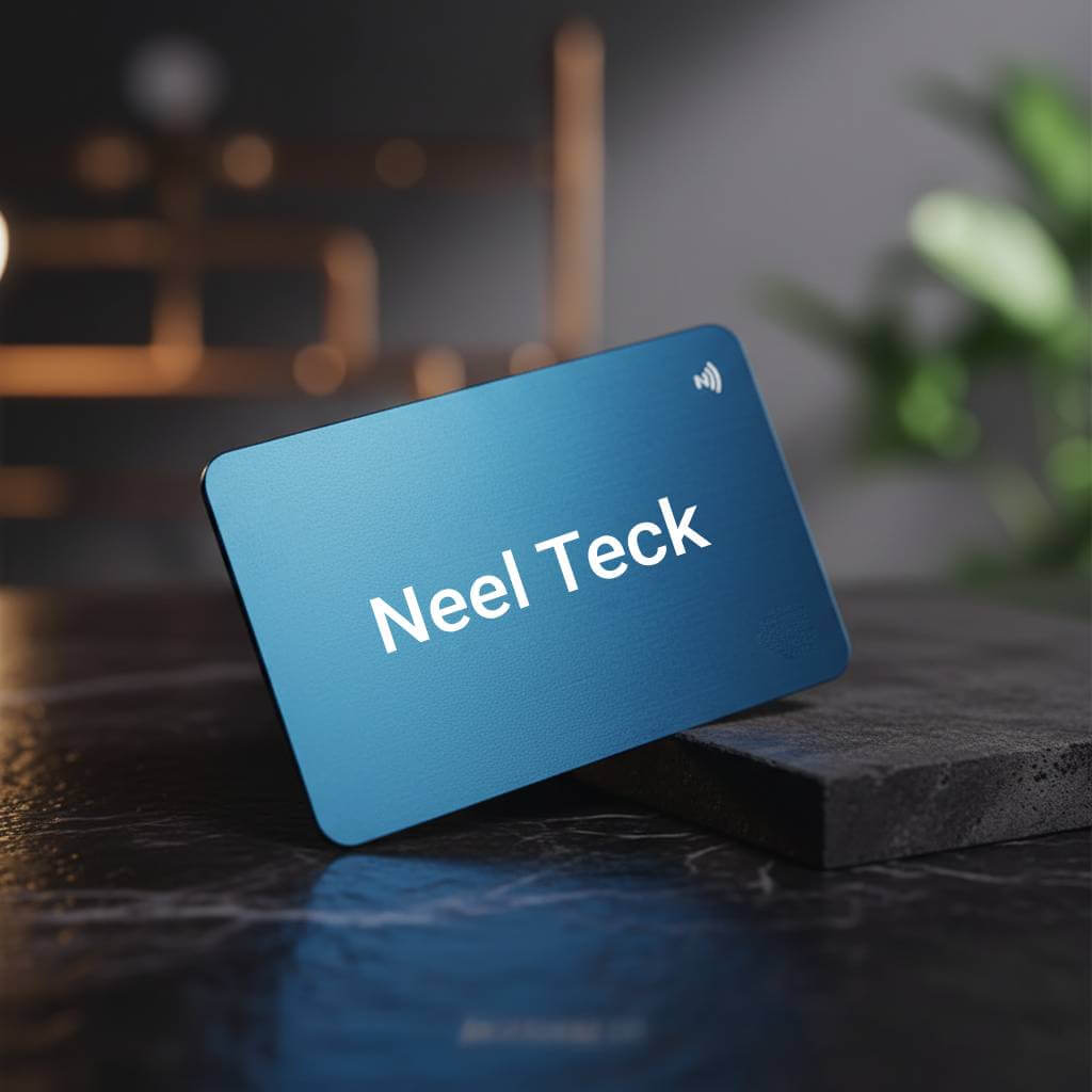 The Neel Teck Digital Business Professional Card blends premium design with advanced NFC technology to create a modern digital business card for professionals worldwide. Made from durable 1 mm PVC material, this NFC business card features a built in NFC chip and QR code, ensuring instant compatibility with Android and iOS smartphones. With a simple tap or scan, your contact details, portfolio, website links, and professional profile open in seconds no app required.