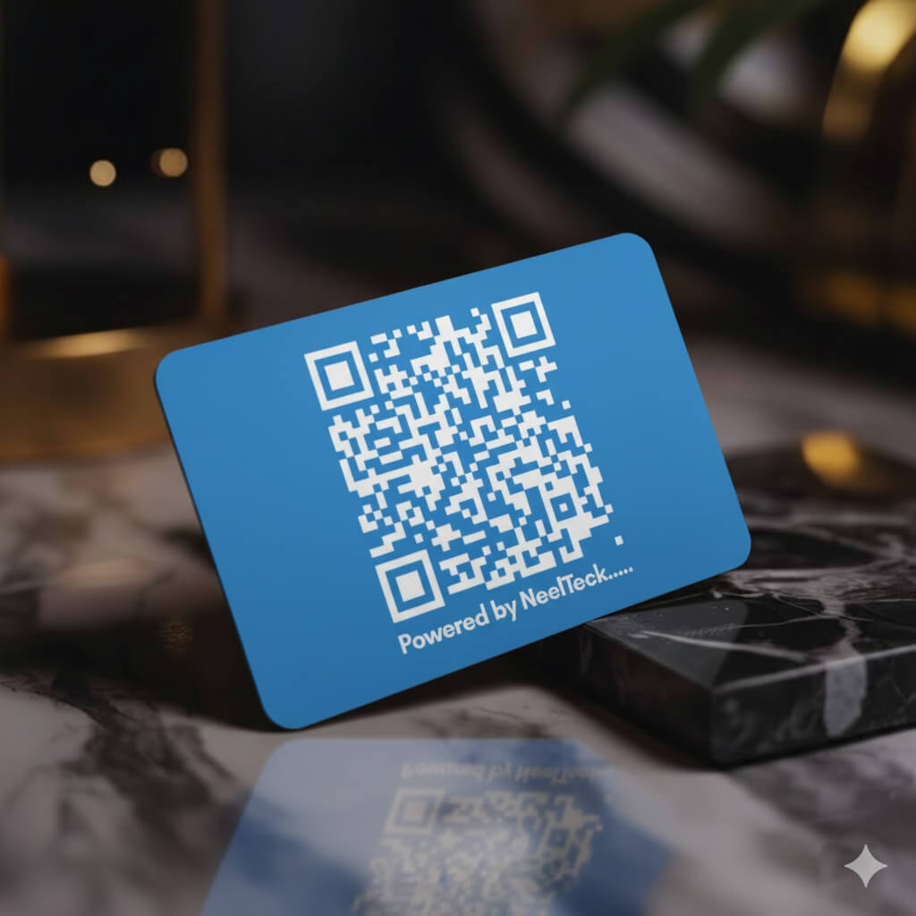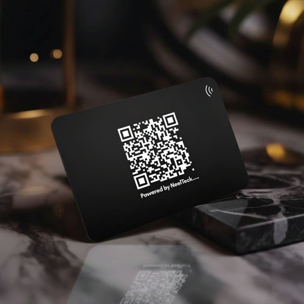 The Neel Teck Smart Contact Card blends modern design with advanced NFC technology, making it a powerful digital contact card and smart visiting card for today’s professionals. Made from durable PVC material with a smooth 1 mm premium finish, this NFC smart card features an inbuilt NFC chip and QR code that work instantly on Android and iOS smartphones. Just tap or scan to open your contact details, social media profiles, or digital identity no apps, no delays.